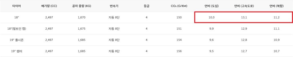전장 4,685mm, 전폭 1,850mm, 전고 1,400mm 그리고 축간거리(휠베이스)는 2,835mm이며 가솔린 2.5 터보 엔진과 8단 자동변속기가 조합되어 최고 출력 304마력(@6,200rpm), 최대 토크 43.0kgf·m(@1,650~4,000rpm)를 제공합니다. 서스펜션은 전륜 맥퍼슨 스트럿, 후륜에는 멀티링크가 적용되며 연료탱크 용량은 60L입니다.
